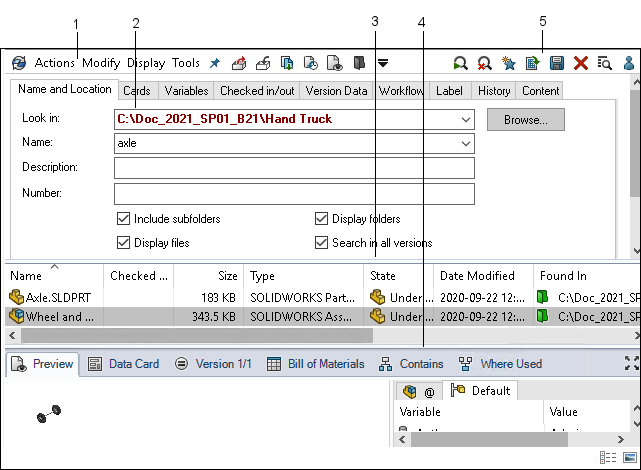 Отображает выбранную карту, которая позволяет указать критерии поиска. |