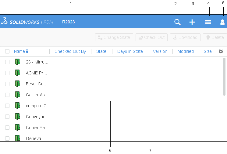 Отображает текущего пути к списку файлов и папок или к сведениям о файле. Для изменения пути нажмите на имя папки или корневую папку хранилища. |