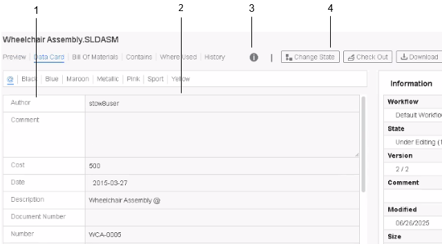 Нажмите . Отображает информацию о файле, например рабочий процесс, текущее состояние и версию. |