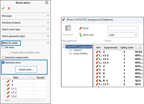 Чтобы проложить выбранные провода отдельно, выполните следующие действия.