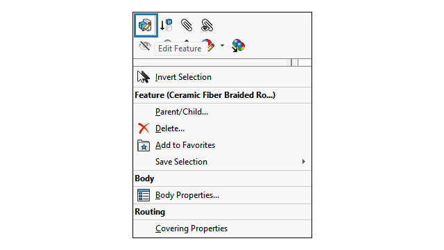 - Правой кнопкой мыши нажмите на элемент изоляции в дереве конструирования FeatureManager.